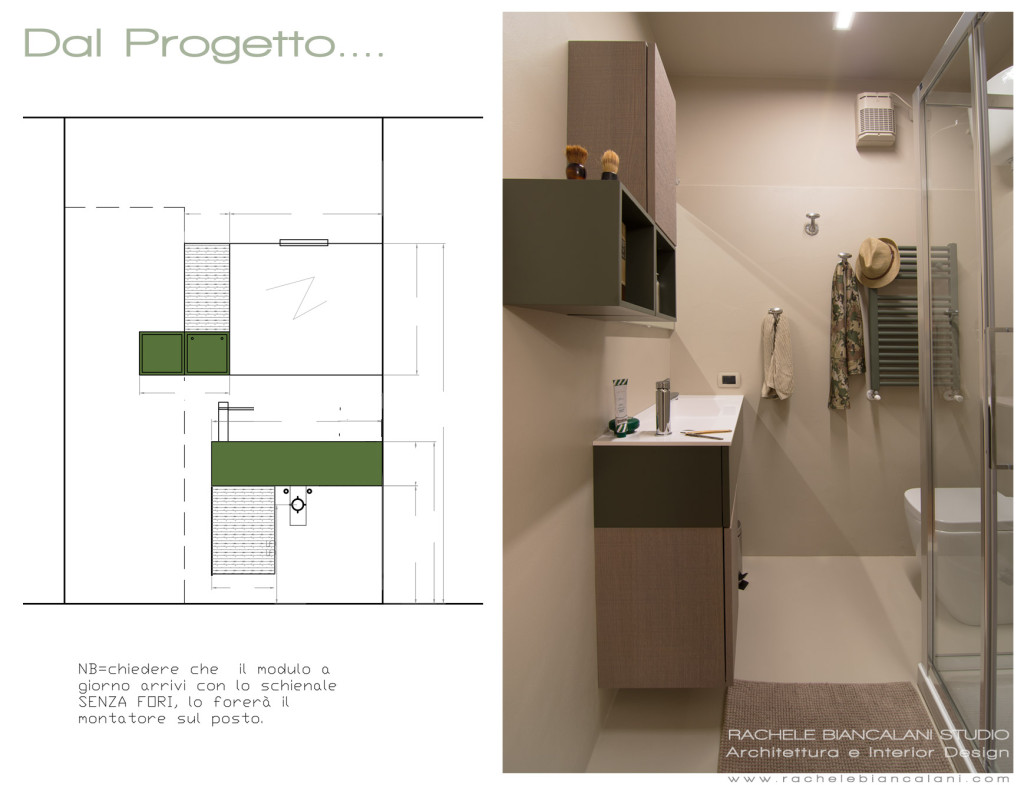 infatti del bagno più piccolo dell’appartamento di single impenitente che abbiamo appena finito di ristrutturare! Il Committente ha voluto una casa declinata al maschile: